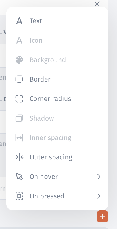 To style your menu, go to the Menu Style section in the Display settings of the Menu component. Here, you can adjust the height, background, border, corner radius, and outer spacing, ensuring the menu fits seamlessly with your app’s overall design.