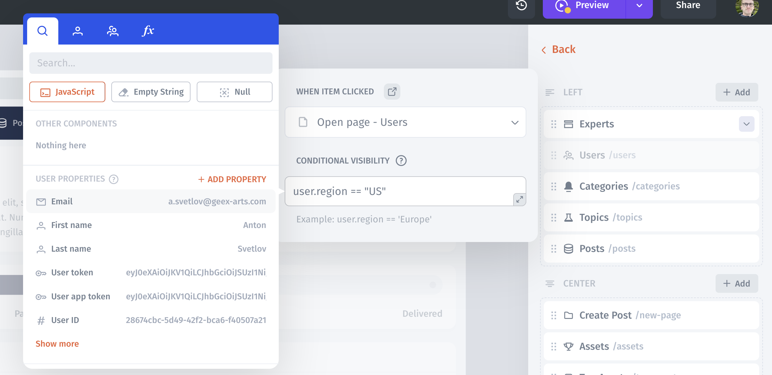 The navigation bar helps users find their way around your app. While in the builder mode, you can access all the pages. The great news is that Jet allows you to craft as many as three menus and combine them. And guess what, you can also personalize your navigation! Here's how you can do it: