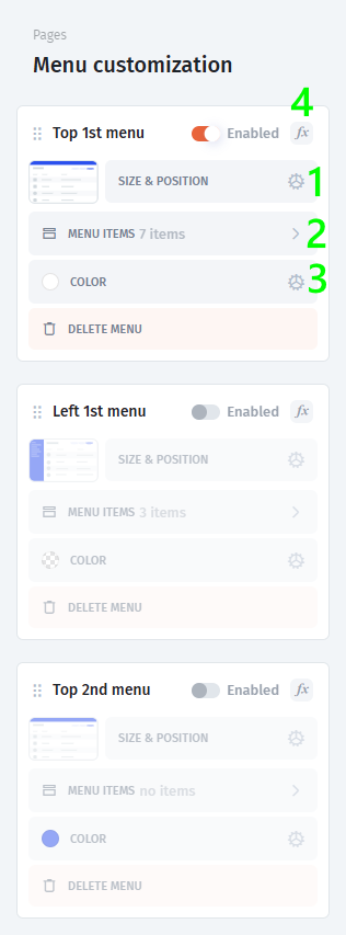4. Enable/Disable the menu, set conditional visibility via the Fx button