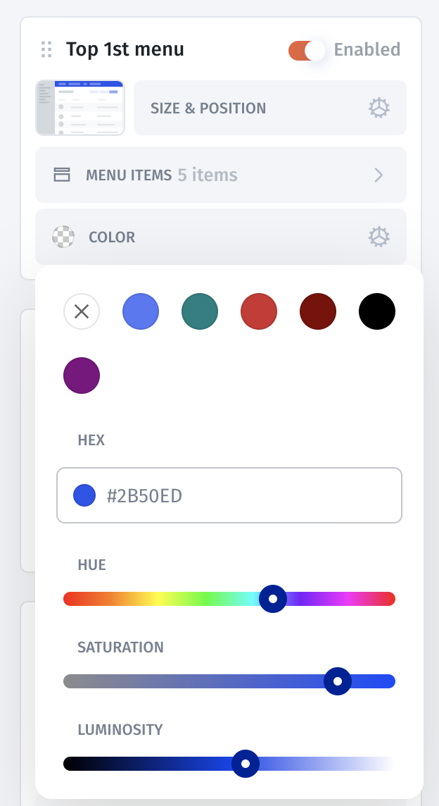 You can apply different colors to the menu background. Select menu -> click **Color**