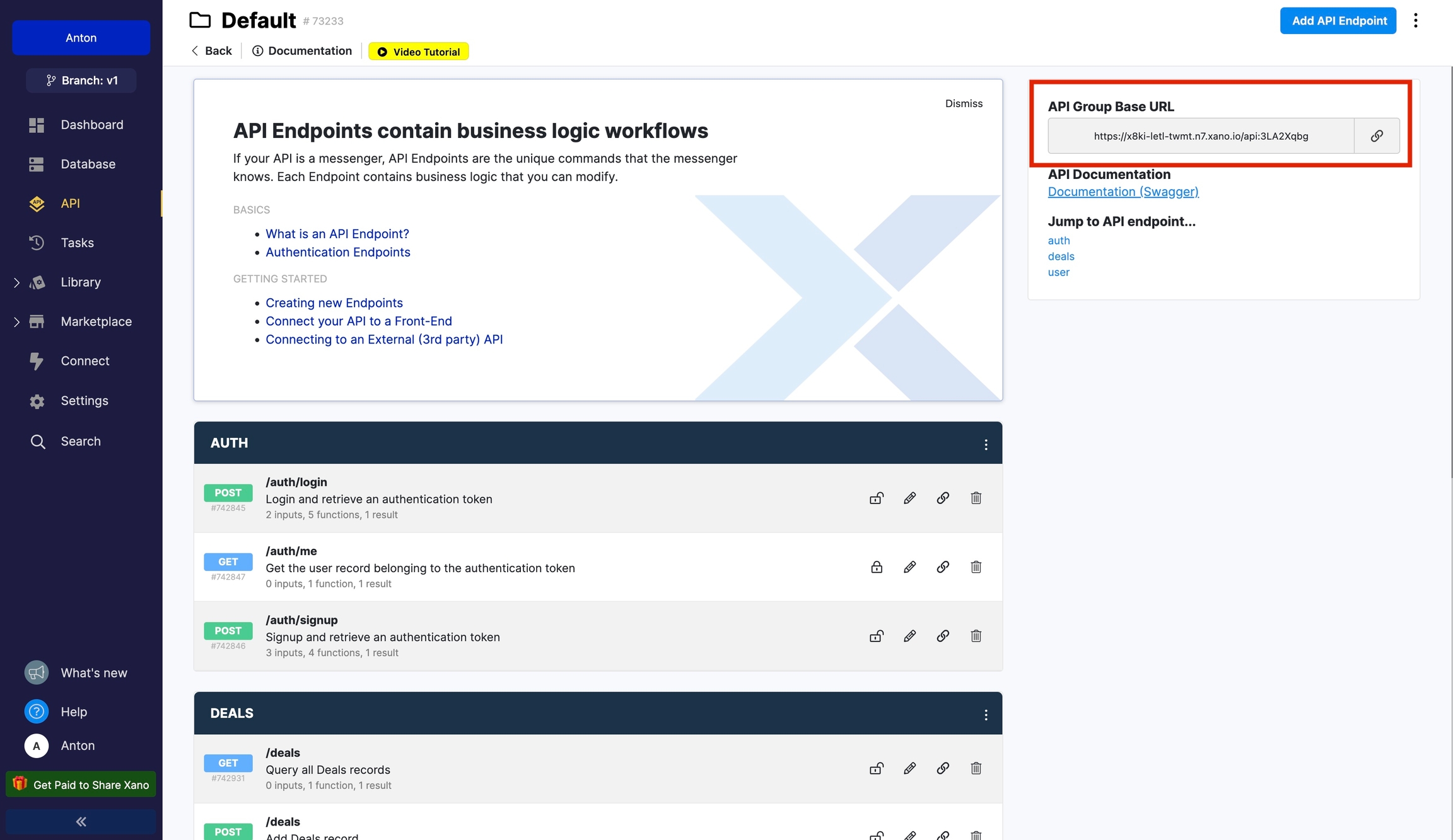Use Default CRUD operations endpoints. Go to the API tab in Xano from the left menu and choose Default API Group and Copy API Group Base URL to your clipboard, and let’s head over to Jet Admin!